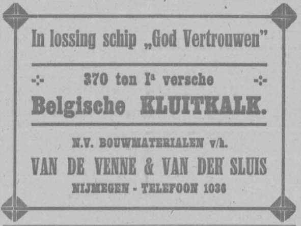 Gezien de adresboeken lijkt -gezien de grote vermeldingen- voor de N.V. het adres van de Jan Berendsstraat gebruikt te worden. In de kleine melding zelf staat wel naast de Jan Berendsstraat de Biezenstraat. De directeur F.L.M.H. van de Venne woont zelf op de St. Annastraat 169. (1928, 1932, 1934, 1936, 1938, 1940)