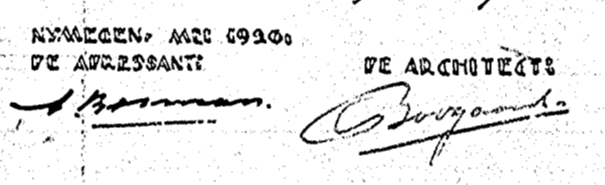 1934 Borneostraat 28 t/m 34 Ontwerp vier Heerenhuizen a/d Borneostraat te Nijmegen, v/d Weled Heer A.J.W. Grandjean aldaar, architecten Meerman…