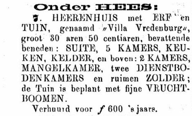In mei 1879 staat de Villa Vredenburg te koop.