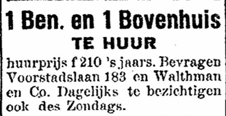 Een advertentie in De Gelderlander 23/5/1915: Weisscher woont dan op Voorstadslaan 183; wat is zijn relatie met Walthman en Co.? Dit moet nog verder worden uitgezocht.