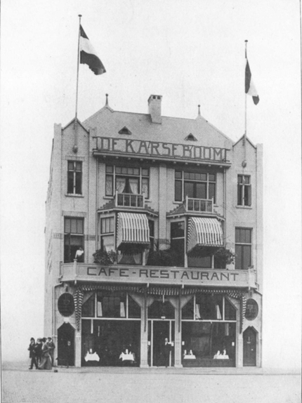 | Café-restaurant | Mariënburgplein | N.V. Bierbrouwerij “de Gekroonde Valk”, Amsterdam | 1909 | 14-12-1909 | Het bouwen van het Café-Restaurant “De Karseboom” aan het Mariënburgplein (P.G. Buskens, J.P.W. Bieling) | De Gelderlander 28/11/1909 | A | M.C. Konings, f23.998 (waarschijnlijk, obv laagste inschrijving) | De Gelderlander 15/12/1909 |