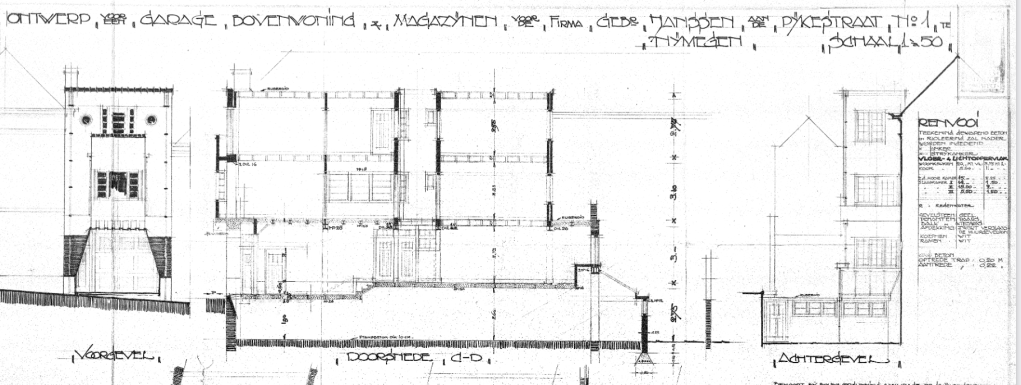 In 1936 is dit pand grondig verbouwd naar een ontwerp van Charles Estourgie. “Ontwerp voor een garage, bovenwoning & Magazijnen…