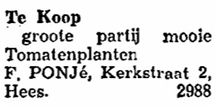 In 1938 blijkt Ponjé de kwekerij te hebben overgenomen: op 30-5-1938 plaatst hij een advertentie in de Gelderlander voor tomatenplanten.